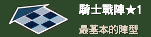 骑士战阵:不论用何种职业的角色都能打到2名角色的中庸之阵。
