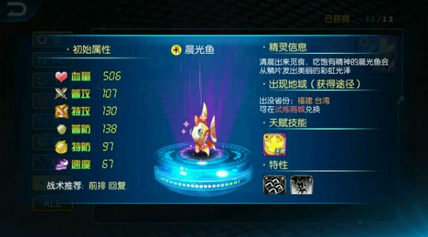 前期阵容方面无论是平民还是土豪都建议配一只蛋蛋龙【江西和湖北】跟晨光鱼【福建和台湾】,一个是最实惠且开特性容易的前排,一个是奶妈,这个游戏不管是刷图、刷巢穴、竞技场、活动副本等等,阵容里面都少不了一只给力能抗的前排跟一只万金油奶水十足的奶妈。