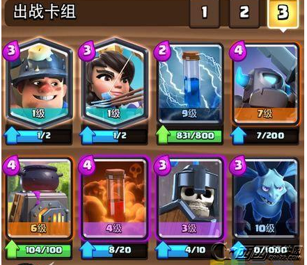 1级矿工、1级公主、9级小闪电、7级小皮卡、6级锅炉、4级毒药、3级骷髅守卫、10亡灵