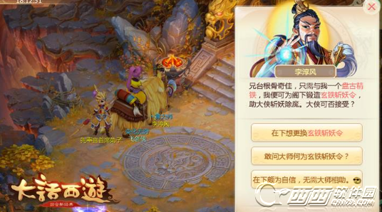 与此同时,选择与卜算大师李淳风对话,少侠(队伍)还将获得挑战魔窟的强力增益道具——玄铁斩妖令(注意啦,有效周期为一周)!