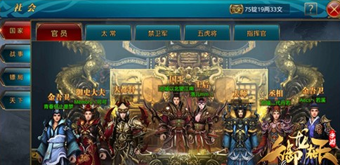 指挥官、五虎将、禁卫军同样需要国王的任免,国王自动担任指挥官,三者的称号属性也均相同,都是力量、智力属性提升100点,激活称号加成100点体质。此外,五个太常官职桃源镇太常、华容道太常、卧龙城太常、阳平关太常、边境太常带来的属性则是体质提升275点,激活之后可以带来物理与法术攻击力的3%加成。