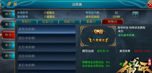 御龙在天特殊称号的分类与属性