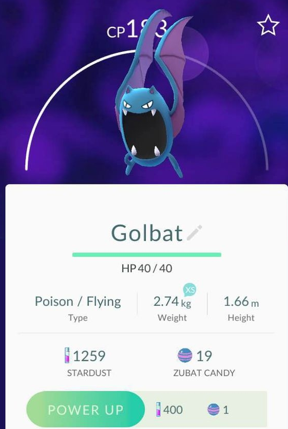 图中第一个大嘴蝠是我升级到上限之后进化的,大概130左右CP, 第二个是随便抓来进化的,大概50左右CP。可以明显的看出来他们的可升级上限不一样。 另外升级满之后进化CP值也是满的。 下个验证问题是不同升级上限的pokemon(即训练家等级不同)都升级至上限之后再进化会不会有差别。