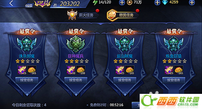 悬赏任务每日可以领取10次,按照星级来划分也有不同的奖励,这个我们建议尽量每次调高星级的来做,因为高等级任务的奖励远远超过低等级任务,因为这个有次数限制,所有我们接取任务前一定要好好考虑哦!