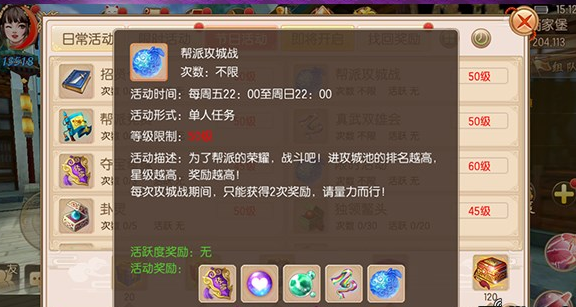 3、 胜负规则:在活动期间内,帮派成员所攻下城池的星级数量总和较多的一方获得胜利。
