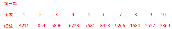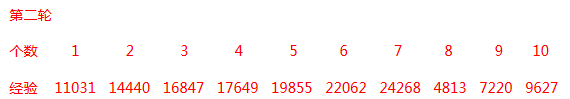 第三轮鬼经验变少。全部10个都是二人鬼,经验相差843或者842。