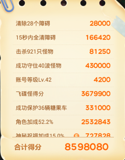 ②加成自己看情况——贵族3:糖果赛分数加成5%。VIP4:糖果赛分数加成5%。神秘祝福:分数加成5-15%。