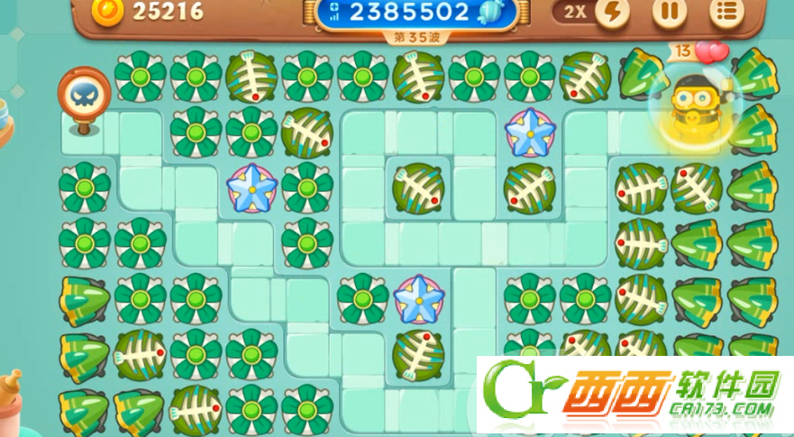③蓝光:扔冰块,以目标为中心,3*3范围内冰冻10秒,目标炮塔被摧毁。