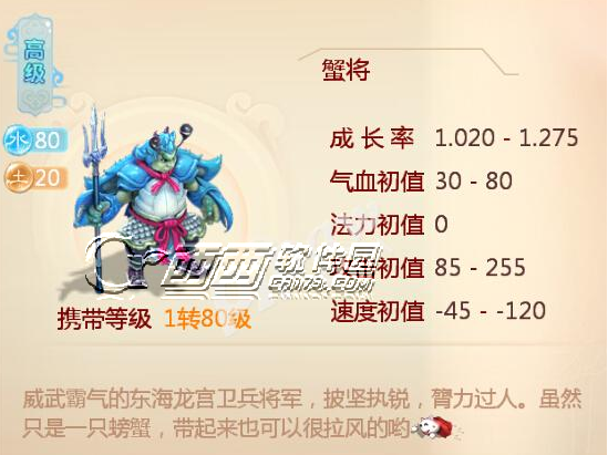 大话西游手游今日7月14日更新了新的召唤兽-蟹将,蟹将是一个负敏攻宠,属于比较稀少的属性,蟹将的技能属性怎么样,蟹将值不值得培养。下面一起和西西来看看大话西游手游蟹将值不值得培养,希望大家喜欢。