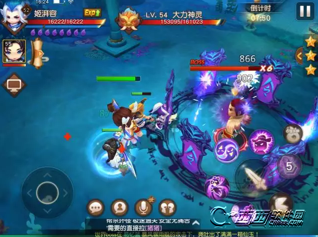 BOSS大力神灵的攻击能力很强,一次中招掉血很可观,因此要灵活躲避它的攻击,即便是普通攻击也要小心。当大力神灵气血被攻击到只有一条血的一半时即可通关。