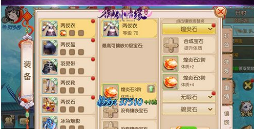 宝石的来源很广泛,参加万妖塔和幻梦游仙活动都可以获得低阶宝石,在商铺我们同样可以通过消费银币来购买1至3阶的宝石。而宝石的合成则需要两颗同类同阶的宝石才能合成更高一阶的宝石,宝石最高阶为10阶,也就是说1颗10阶宝石需要512颗1阶宝石,这对普通玩家来说可不是一个小数字,所以我们需要合理需求宝石阶级,不要一味追求高阶宝石,用现有的宝石填充满这18格镶嵌槽来达到利用率最大化才是王道!