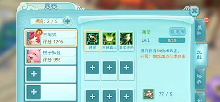 灵宠技能可在战斗释放,根据不同的技能造成伤害、回复血量、增加防御等不同效果,技能也可以通过消耗一定数量神仙茶道具来经行升级。