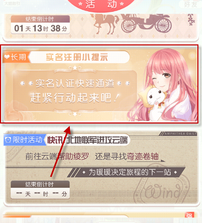 1、在奇迹暖暖活动列表中,能够看到有着实名注册小提示的字样,点击进入