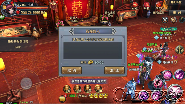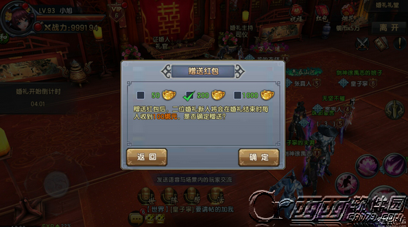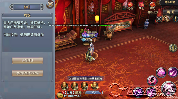 在等待婚礼庆典开始的时候前来参加婚礼现场的少侠可以进行祝福喊话,发红包,放礼花,变身等相关操作哦!
