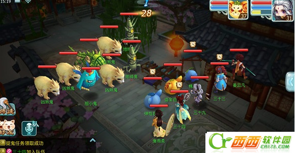 4、做任务时,由队长带队,其他队友选择群攻技能后自动挂机。当然,如果队友网速够给力并保证全程都在的话,可以切换手动操作,并约定从某一侧的怪物集火打起。集火攻击的速度可比随机分散攻击的速度快了很多。