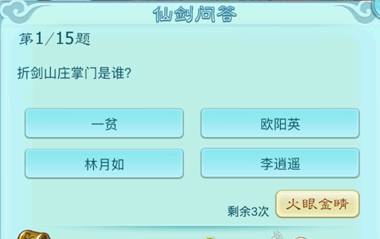 1仙剑问答每天可答题15个。