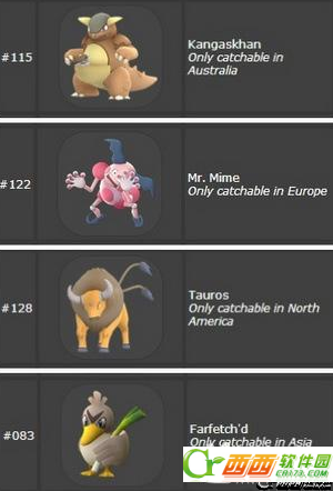 精灵宝可梦Go为了让游戏显得更加真实,增添了地区限定精灵这个设定。所谓地区限定,意思就是这些精灵只在特定区域出现,那么有哪些精灵呢?下面西西就来为大家一一介绍,以及它们的捕捉方法,希望大家喜欢。