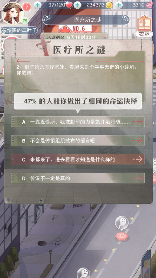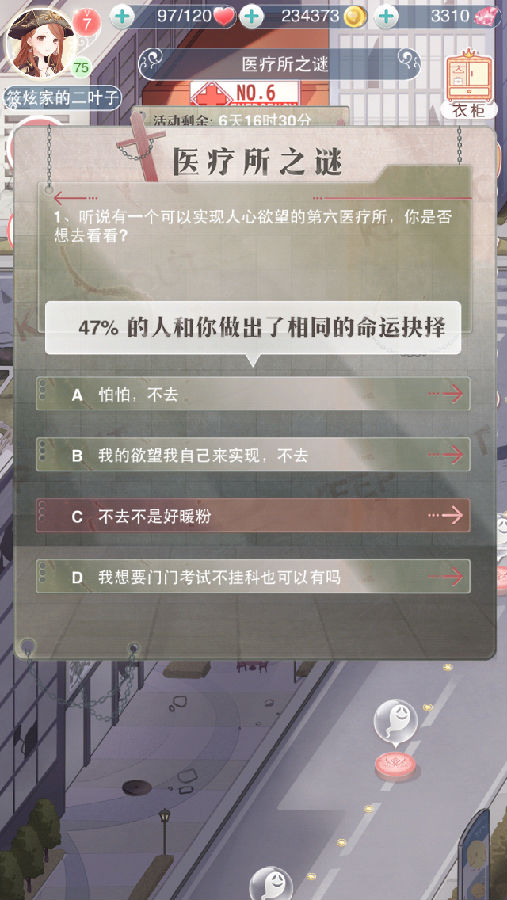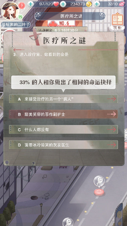 奇迹暖暖的医疗所之谜的活动正式的开启,在这次的活动当中,暖粉们可以在过关之前,来回答第六契约书的问题,从而来获得一套半价的套装的兑换的优惠,不过要做出怎样的回答,才能够获得自己喜欢的那套半价的套装呢,喜欢狡黠天使的暖粉们,想要获得狡黠天使的护士套装的半价,就来看看要怎样的顺序来答题吧。