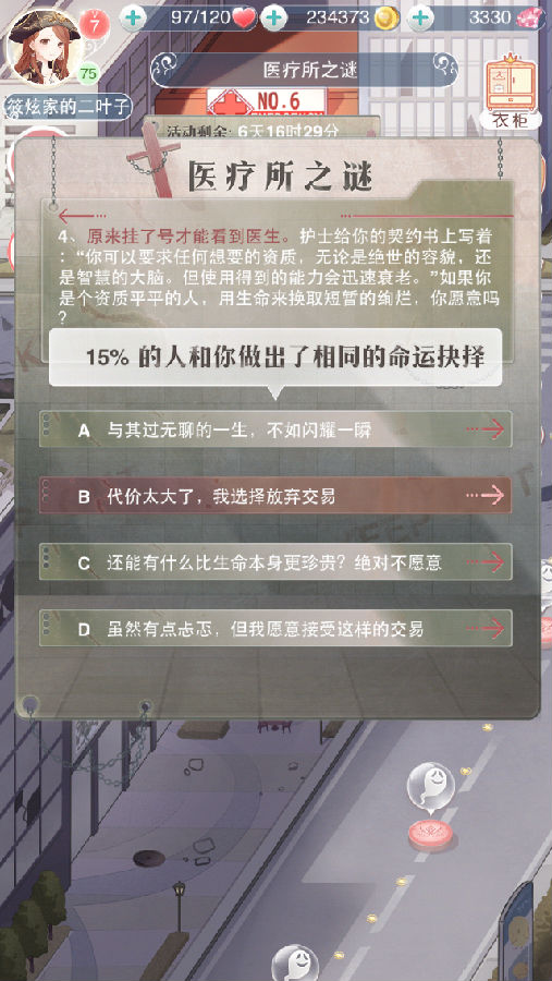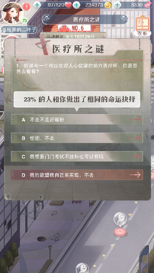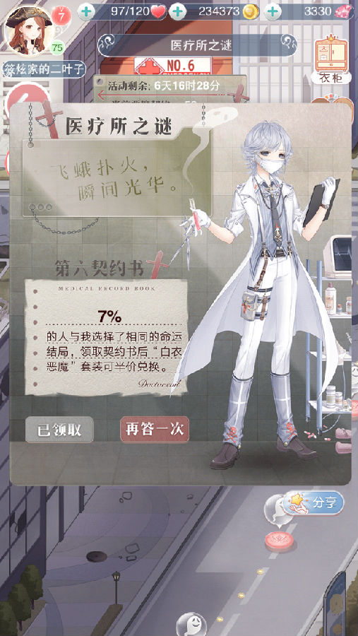 首页 → 安卓游戏资讯 → 安卓游戏攻略 → 奇迹暖暖医疗所答白衣恶魔半价获得方法 奇迹暖暖第六契约书怎么答题选择