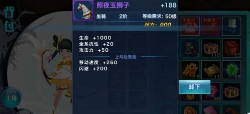 上马后激活的移动速度和闪避加成还是非常不错的,比乌云踏雪仅差40点,在短时间内很难看出来明显的差距,在赶路、挂机、逃跑时除非遇到拥有乌云踏雪的少侠,否则还是能在速度上进行碾压。再加上它出色的坐骑外表,绝对是外貌党少侠的不二选择。