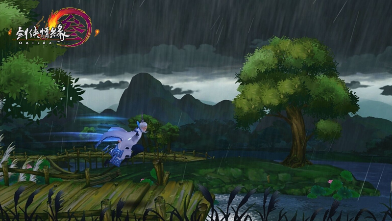 即便是一款手游,《剑网3:指尖江湖》依然采用了端游级的开发标准,长达2年的开发时间,将3D构架的多层次纵深体验与纯手绘用心创作的温度与情怀两相结合。游戏使用了手游领域少有的实时全局光照系统,实现了全场景昼夜循环和动态天气效果。在真实呈现阴晴雷雨的同时,将光影变换实时反馈到场景中。白天蝴蝶飞舞,夜晚萤火闪烁,雨水飞溅,林间惊鸟,精心营造的环境交互带来无处不在的惊喜。