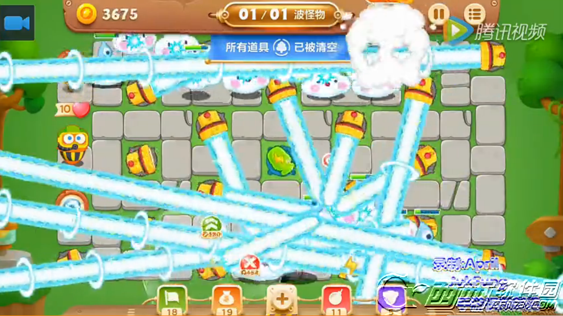 逐个清除道具后就能发现许多新的炮塔帮助自己。最后全屏激光炮对轰就可以了。