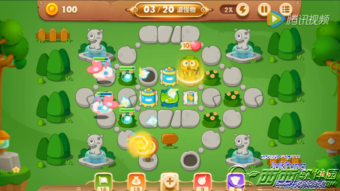 因为这个地图是个环形的,所以负电塔可以充分发挥作用,最后一边补炮塔一边清道具就可以轻松过关了!