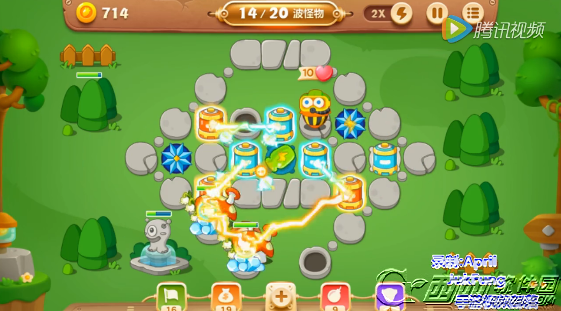破了中间的道具获得足够钱后赶紧补上负电塔和最强辅助瓶子炮。开始刷钱。