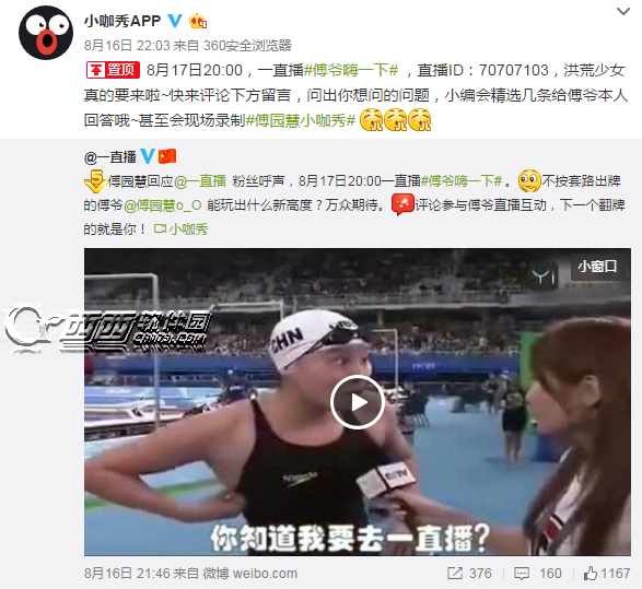 首页 → 业内动态 → 业内资讯 → 傅园慧817在哪直播 傅园慧817直播地址及ID号分享