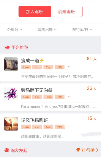 开始:加入或创建一个跑班,每人拿出一笔钱作为跑步契约金