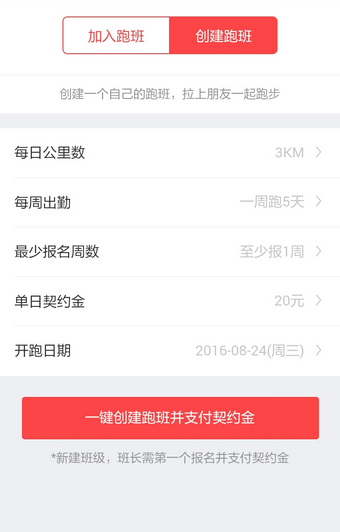 开始:加入或创建一个跑班,每人拿出一笔钱作为跑步契约金