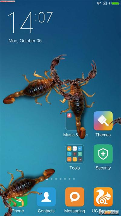 比如假借用好友的手机打电话,悄悄安装启动本应用,设置延时10秒显示蝎子,然后将手机还回给好友,好友拿到手机后,不久就会出现蝎子在手机上爬行,好友会被吓到的,达到恶作剧的效果。