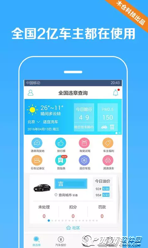 1、违章查询:覆盖全国360个城市,车辆违章查询与交管局实时对接,保证违章数据的准确、专业、安全。