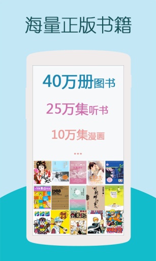 1.海量正版资源:超过40万册图书、杂志、漫画、听书、170种手机报、美图
