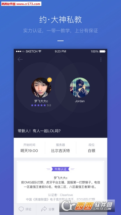 比如你要约大神,根据筛选找到你想要约的大神,点击它,进入详细的资料页面