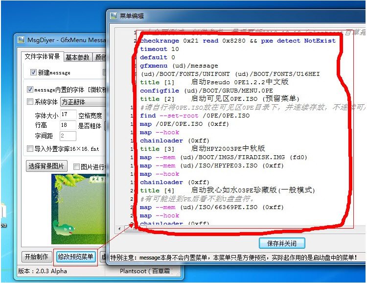修改背景用MsgDiyer.exe这个软件!而用MsgDiyer.exe修改message时,也出现了修改启动菜单项!