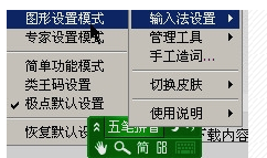 3、在极点输入法的状态栏点右键->输入法设置->图形设置模式; 打开设置界面