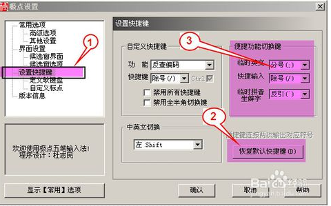 1、在极点输入法上点右键->输入法设置->恢复默认设置