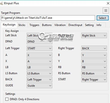 1、打开软件,首先select 选择游戏文件所在目录,然后做a b x y 按键对应,因为我的back,start 在游戏中是lt,bt 所以也要重新对应下如图
