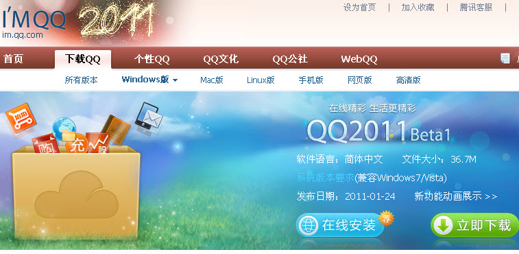 今天 腾讯QQ官方网站:http://im.qq.com 正式提供了QQ2011 Beta1(简体)的下载了。