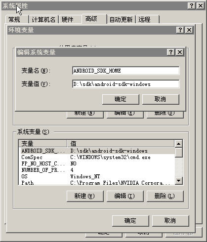 然后我们再添加一个 ANDROID_SDK_HOME 的系统变量 变量值就是你解压的 SDK目录