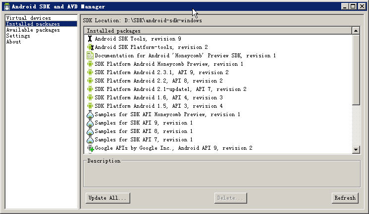 我们可以点一下 Installed packages 看一下我们安装的 sdk 有哪些
