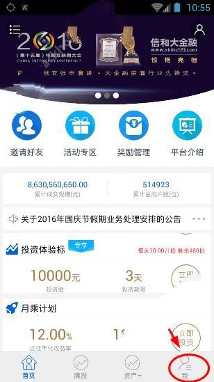 首先打开资产家APP进入首页,点击右下角,如下图。