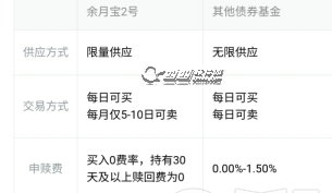 申购/赎回费率:余月宝2号买入不收取手续费,持有少于30天时卖出将收取0.1%赎回费,若持有满30天及以上则赎回费为0;余月宝1号申购/赎回不需要费用。