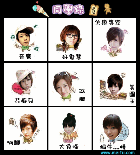 班老大给我发同学录,我纳闷最近班级没有搞同学聚会啊,哪来同学录?一看她发来的同学录,我简直被雷到了,原来是Q版搞笑同学录,一打听才知道是美图秀秀独家推出的多人摇头娃娃制作的。
