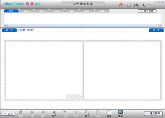 整个界面分为:标题栏及菜单区、编辑菜单及列表区、相册版面区、辅助功能区。