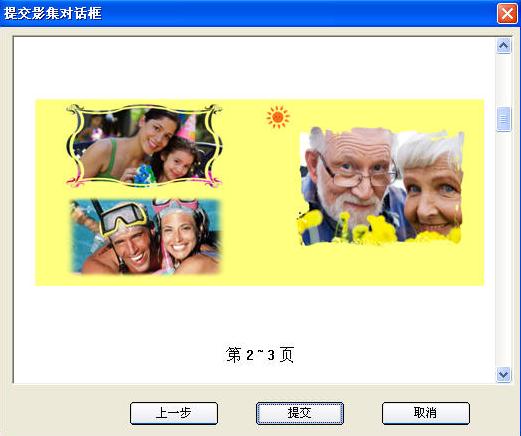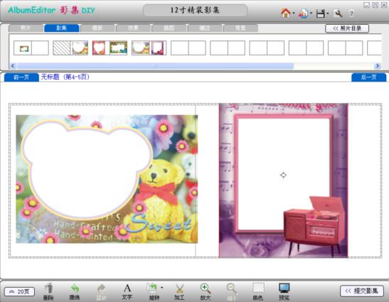 H. 浏览相册: 点击编辑菜单中的“影集”,所有的相册版面都将显示在列表区中,点击你想浏览的页面,相册版面区就自动“翻”到该页上。
