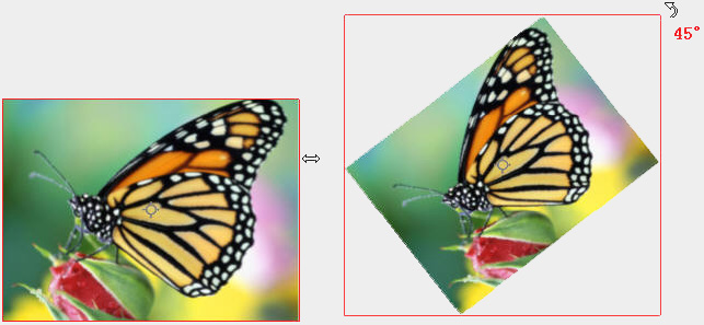 光标照片尖角或红色边框尖角处时,光标变为旋转箭头形状,按住左键拖动可使照片绕中心旋转。