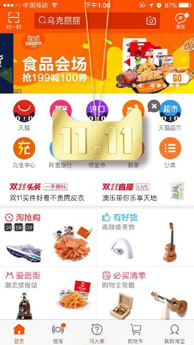打开手机淘宝,在首页我们就可以看到“点击开启2016双11”按钮;