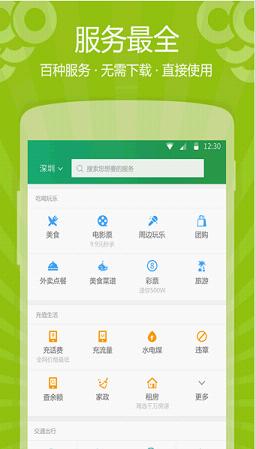 一个App - 涵盖百种服务,充话费、找美食、打车、租房、看电影、招聘、点外卖,应有尽有。
